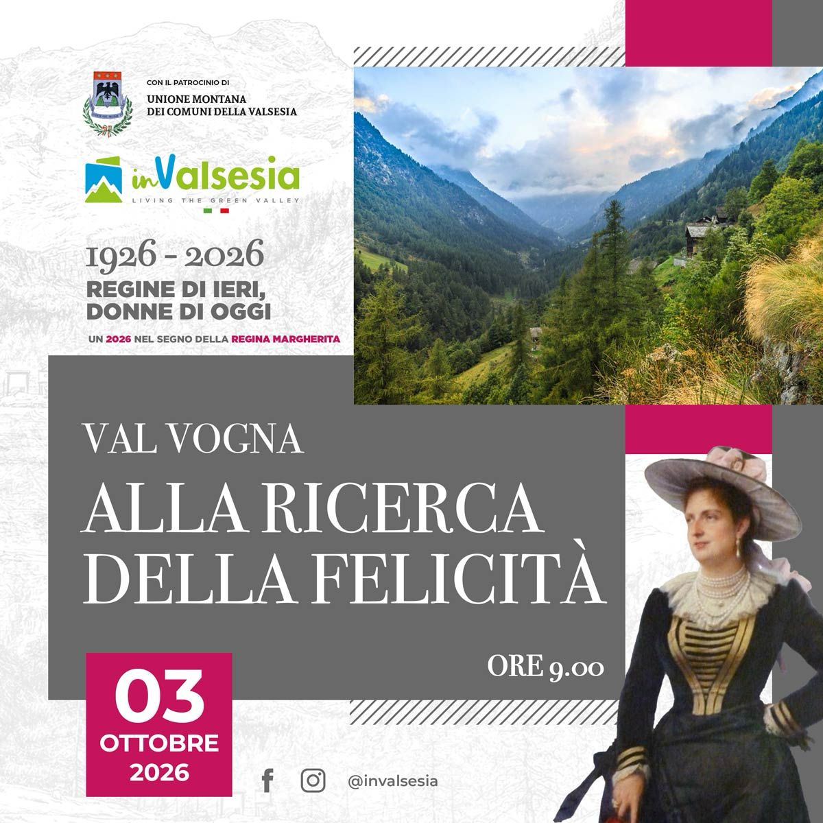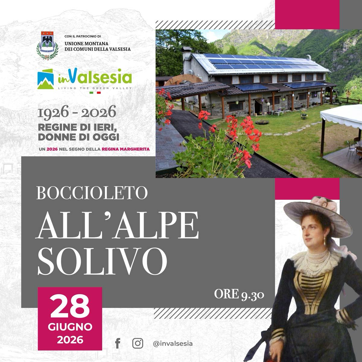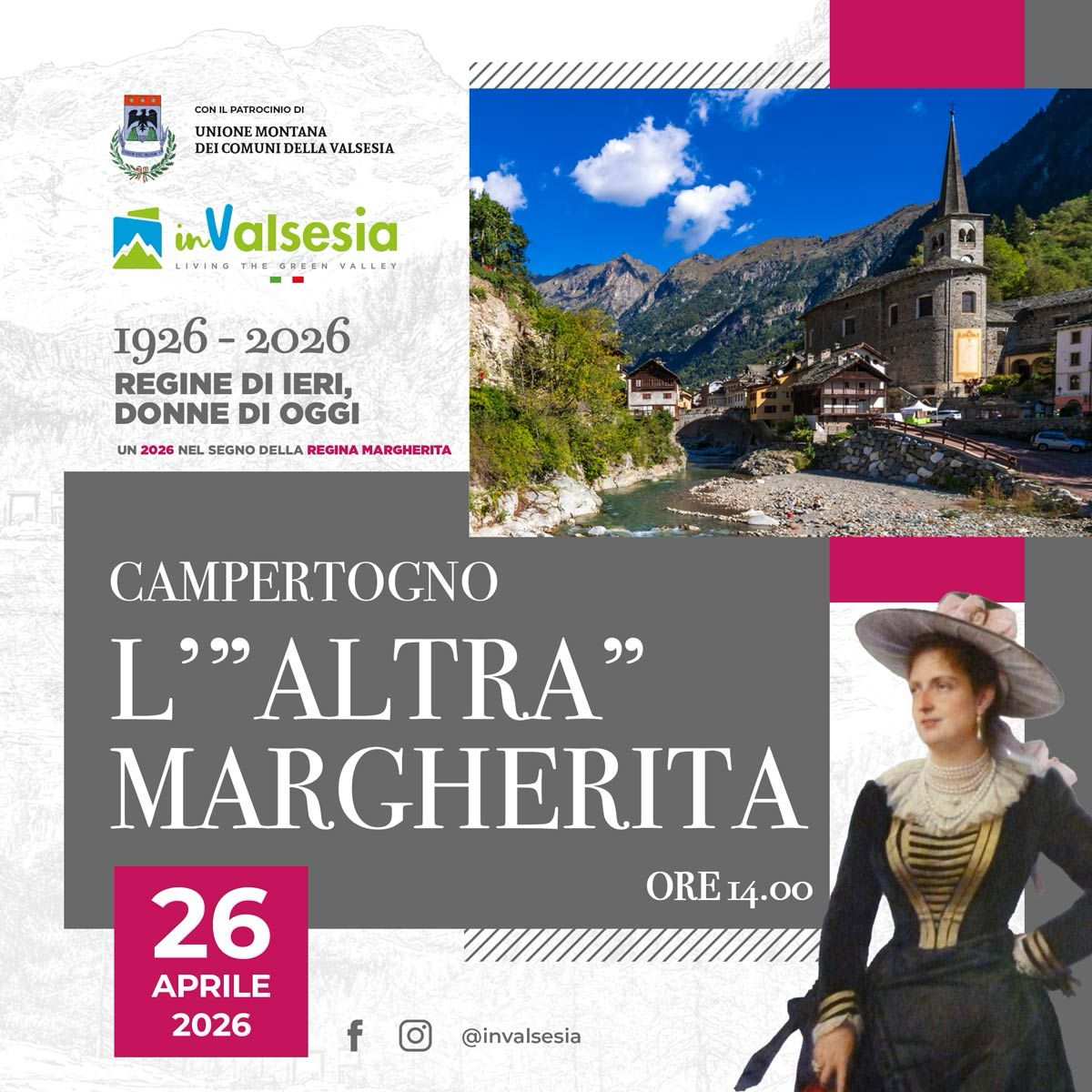 Riva Valdobbia Riva Valdobbia, ItalyScopri la Valsesia attraverso le Donne di oggi sulle orme delle Donne di ieri che hanno fatto la storia per il 100° della Regina Margherita