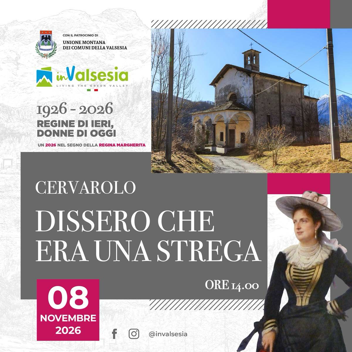 Cervarolo Varallo, ItalyScopri la Valsesia attraverso le Donne di oggi sulle orme delle Donne di ieri che hanno fatto la storia per il 100° della Regina Margherita