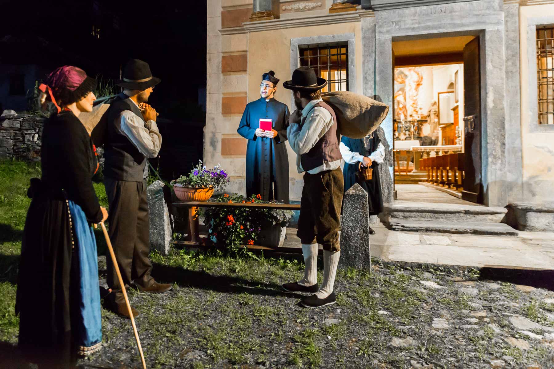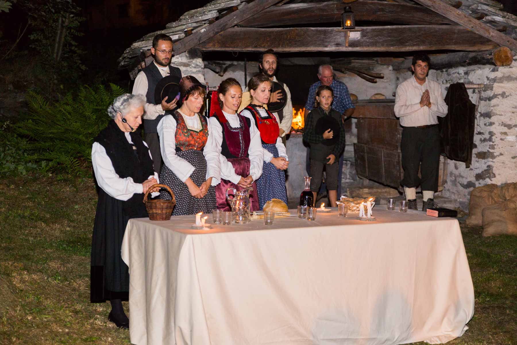 Un’intensa esperienza nel piccolo villaggio Walser di Pedemonte, nel Comune di Alagna Valsesia, ha portato La Compagnia Itinerante a valorizzare i luoghi dell’Ecomuseo di Alagna, in particolar modo il Museo Walser, i mulini e il forno di Uterio. “Schatzarlji”, titolo scelto per la rappresentazione, ha raccontato storie tradizionali, leggende e aneddoti di vita quotidiana adatti a narrare una giornata-tipo nel villaggio, rievocando in qualche caso personaggi realmente esistiti. Una storia d’amore strettamente legata alla montagna.