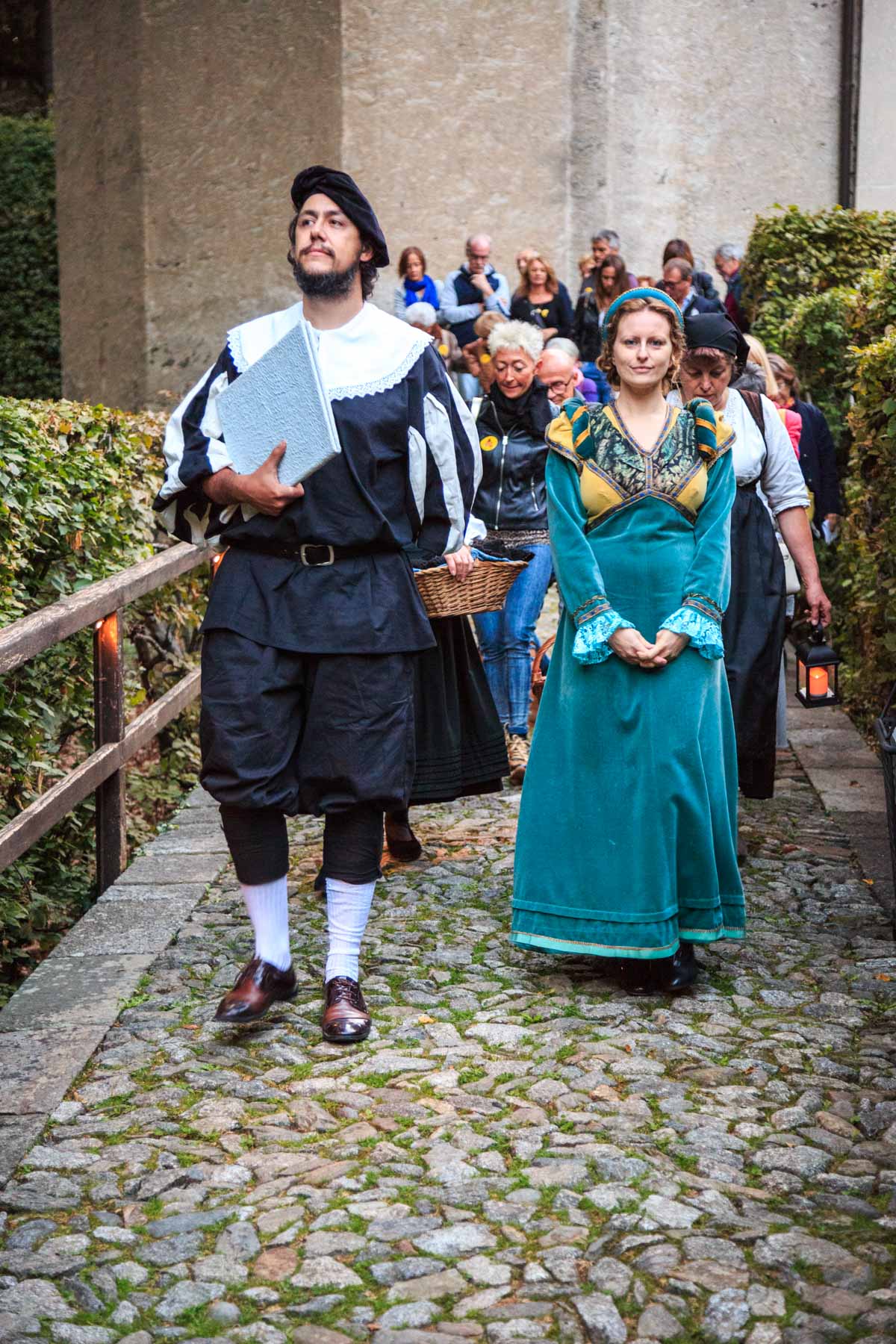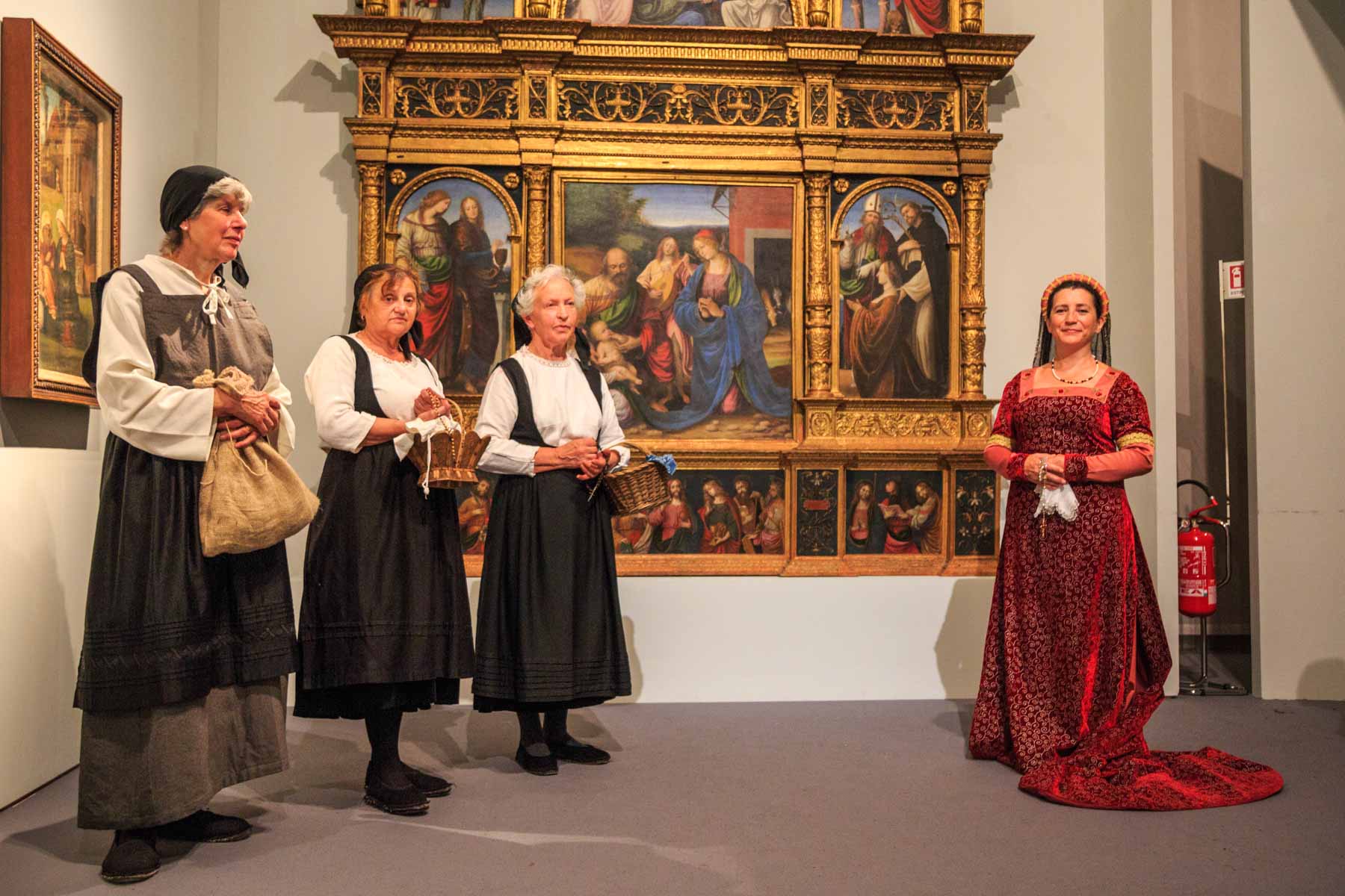 La visita teatrale, proposta in più repliche, ha valorizzato Varallo e i suoi luoghi principali: il Sacro Monte, il Palazzo dei Musei, alcune parti del centro storico e la chiesa di santa Maria delle Grazie. Attraverso la ricostruzione dell’abito, con diversi dettagli e materiali osservati dalle opere di Gaudenzio, abbiamo accompagnato i visitatori all’interno della storia più coinvolgente della Valsesia.